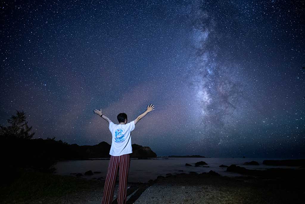 夕焼けが残る明るい空からゆっくりと暗くなっていく夜空へ。