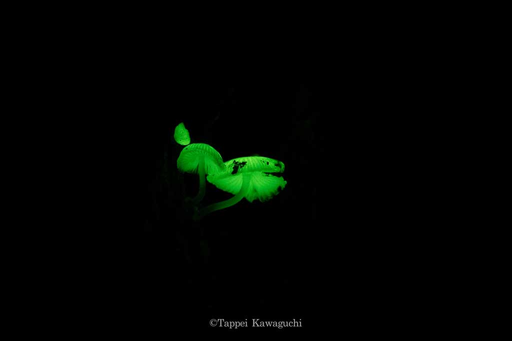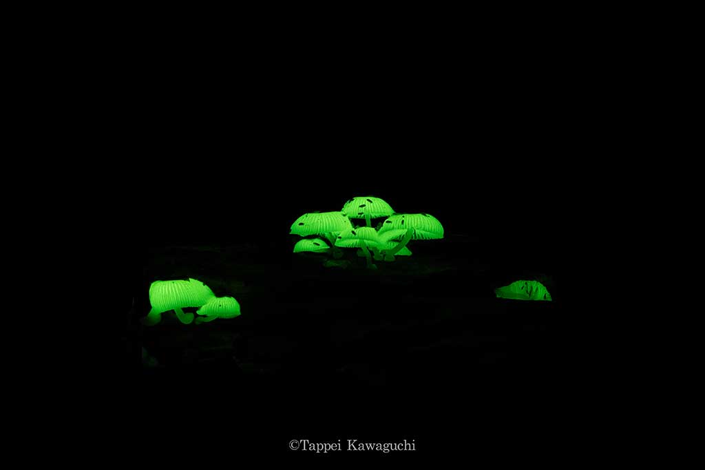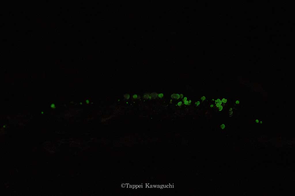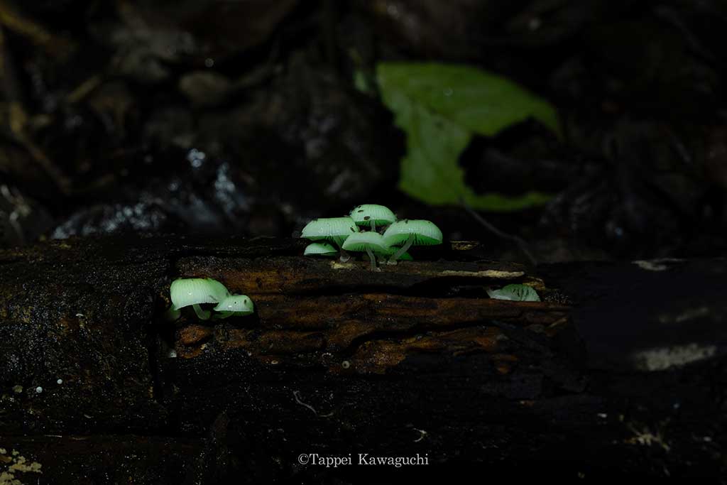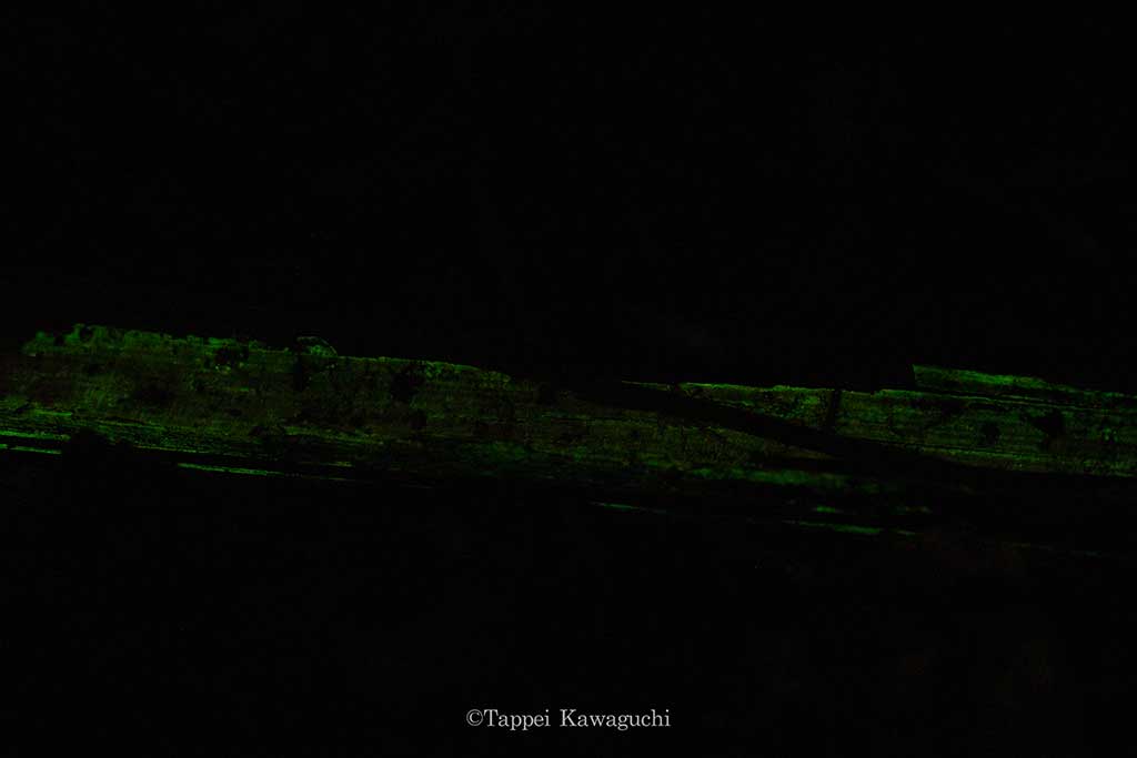 さて、そんな湿気が多いこの時期の楽しみは、夜、怪しげに光るキノコ、「グリーンぺぺ」。
