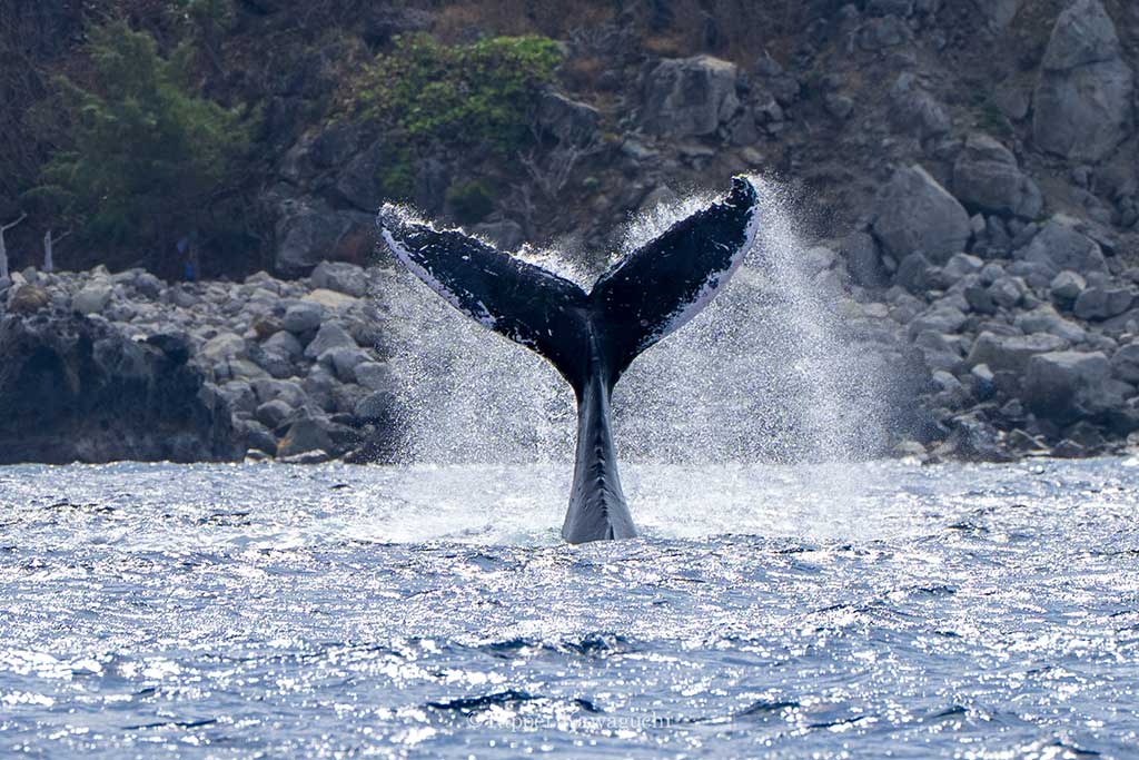 テールスラップ、海面から大きな尾びれを出し、水面を叩く行動です。